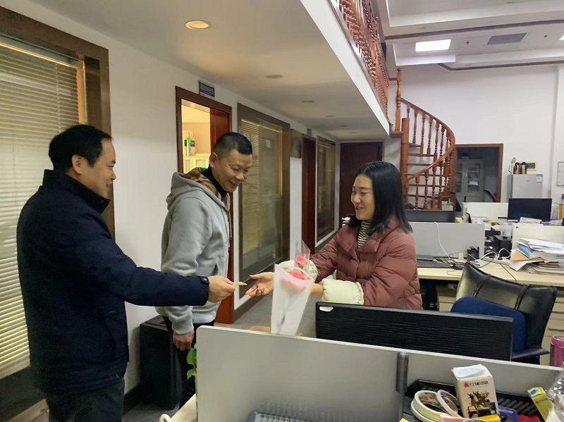 3月8日上午,工會主席将一朵朵鮮花和商超購物卡送到剛上班女職工手中,向全體女職工及女家屬們緻以節日的問候和美好的祝福,并感謝她們一直以來爲天馬發展辛苦付出與無私奉獻。